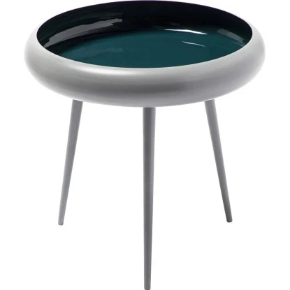 Der Kayoom Beistelltisch Coast 200 in Grau-Türkis ist ein runder schöner Beistelltisch, dessen hohe, nach außen gewölbte Kante seine exklusive Form ausmacht und gleichzeitig verhindert, dass Gegenstände vom Tisch fallen. Durch die Form und das dezente Design lässt sich der Tisch harmonisch in Ihre Wohnräume integrieren. Ein weiterer Vorteil ist das pflegeleichte Material aus Metall und Aluminiumguss, das sich problemlos sauber halten lässt.