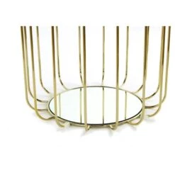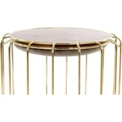 Indem Sie das Sitzkissen aus dem Gestell nehmen, umdrehen und wieder in das Gestell einsetzen, erhalten Sie im Handumdrehen einen attraktiven Beistelltisch mit Holztischplatte. Das Holz bildet eine schöne Einheit mit dem goldenen Metallgestell und bietet gleichzeitig einen attraktiven Kontrast.