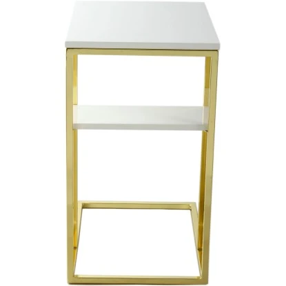 Sein luxuriöses Design erhält der Anstelltisch durch das stabile goldene Metallgestell und die weiße Tischplatte aus Glas. So holen Sie sich ein elegantes und glamouröses Ambiente in Ihr Zuhause.