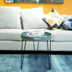 Als zusätzliche Ablagefläche neben der Wohnlandschaft ist der Beistelltisch ideal geeignet. So ist Ihr neues Möbelstück nicht nur ein schönes Deko-Element, sondern auch sehr praktisch einsetzbar als Serviertisch, Couchtisch oder Coffee Table. Zum Abstellen von Getränken oder Snacks während des Filmabends oder zur Platzierung einer attraktiven Tischlampe für stimmungsvolle Beleuchtung kann der Tisch beispielsweise genutzt werden. Mit seiner Größe von ca. 40 cm Höhe und ca. 50 cm Durchmesser fügt sich der Tisch optimal in jede Einrichtung ein.