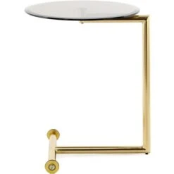 Für das edle Design sorgen die transparenten Glas-Tischplatten sowie das stabile goldene Metallgestell, die perfekt miteinander harmonieren. Bringen Sie mit diesem Anstelltisch einen exklusiven Luxus-Faktor in Ihre moderne oder glamouröse Einrichtung und nutzen Sie die Vorteile des praktischen Möbelstücks.