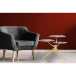 Der Kayoom Beistelltisch Triplet ist ein absoluter Hingucker. Drei runde, versetzt zueinander angeordnete Tischplatten bieten eine moderne Optik fĂŒr moderne und klassische Einrichtungen und gleichzeitig flexible Nutzungsmöglichkeiten. Platzieren Sie dekorative Vasen und Figuren auf dem Couchtisch und nutzen Sie ihn gleichzeitig zur Ablage verschiedener GegenstĂ€nde und Utensilien. Ob als Beistelltisch im Wohnbereich oder als Ablageplatz fĂŒr SchlĂŒssel und weitere tĂ€glich genutzte Dinge im Flur, dieses Tischmodell ist in jedem Raum ein praktisches MöbelstĂŒck.