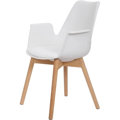 Durch das pflegeleichte Polypropylen ist die Sitzfläche einfach zu reinigen, sodass der Stuhl am Essplatz in Küche oder Esszimmer ideal eingesetzt werden kann. Für Sitzkomfort sorgen die Armlehnen sowie ein PU-Sitzkissen in gleicher Farbe wie die Sitzschale.