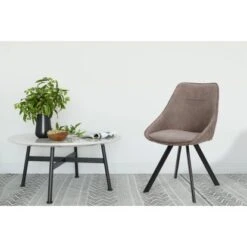 Das zeitlose und unaufgeregte Design des Stuhls machen ihn zu einem idealen Einrichtungsgegenstand für jeden Wohnstil. Die melierte Lederimitat-Oberfläche sowie stilvoll eingesetzte Ziernähte verleihen dem Stuhl eine edle Optik, die zur Aufwertung eines Raumes beiträgt. Zusätzlichen Komfort können Sie durch den Einsatz von Zierkissen schaffen, die Sie in der Sitzschale platzieren.