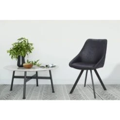 Das zeitlose und unaufgeregte Design des Stuhls machen ihn zu einem idealen Einrichtungsgegenstand für jeden Wohnstil. Die melierte Lederimitat-Oberfläche sowie stilvoll eingesetzte Ziernähte verleihen dem Stuhl eine edle Optik, die zur Aufwertung eines Raumes beiträgt. Zusätzlichen Komfort können Sie durch den Einsatz von Zierkissen schaffen, die Sie in der Sitzschale platzieren.