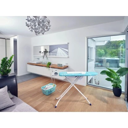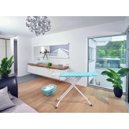 Ein kompaktes Leichtgewicht mit einzigartigem Thermo-Reflect-Bezug: Dampf und Hitze des Bügeleisens werden reflektiert, so dass die Wäsche von oben und unten gleichzeitig gebügelt wird. Mit 120 x 38 cm großer Bügelfläche aus ultraleichtem Spezialkunststoff, Gestell mit Höhenverstellung bis 98 cm. Mit fester Bügeleisenablage plus Steckdose und Kabelhalterung. Speziell für den Gebrauch von handelsüblichen Bügeleisen und Dampfbügeleisen geeignet.