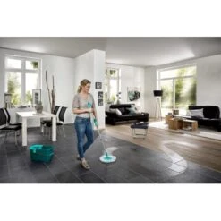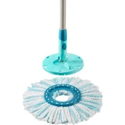 Der Leifheit Ersatzkopf Clean Twist Disc Mop Ergo Micro Duo sorgt für schnelle und glänzende Ergebnisse in der Bodenreinigung. Mit seinem 2-Fasersystem bietet die dopplete Reinigungskraft: Die türkisfarbenen Spezialborsten reinigen gründlich, auch hartnäckigeren Schmutz. Die Mikrofaser nimmt in ihren mikroskopisch kleinen Ziwschenräumen den gesamten Schmutz und große Mengen Wasser auf, sie sind zudem extra saugfähig. Anschließend lässt er sich bei 60 °C in der Waschmaschine waschen und verliert auch nach wiederholtem Waschen seine Reinigungskraft nicht.