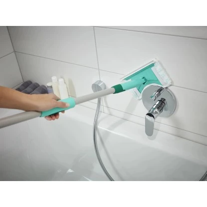 Bei schwer zugänglichen Stellen kommt der Teleskopstiel zum Einsatz, der sich auf eine Arbeitslänge von 75 cm bis 120 cm ausziehen lässt. Mit diesem Fliesen- und Wannenwischer können Sie selbst die hintersten Ecken von hartnäckigem Schmutz befreien und Ihrem Bad einen neuen Glanz verleihen.