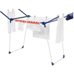 Der Standtrockner Pegasus 180 Solid Plus besitzt alles, was ein mobiler Trockenplatz braucht: Stabile Standbeine, die auch bei Wind sicher stehen. Sehr viel Trockenplatz dank 18 Meter Leinenlänge und seitliche, ausklappbare Flügel, die sich mit ihrer Höhe von 105 cm für längere Wäschestücke eignen. Im Lieferumfang enthalten sind zwei Kleinteilehalter für das Aufhängen von Socken ohne Klammern und ein Wäscheklammerbeutel.