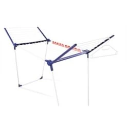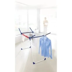 Der Standtrockner Pegasus 200 Solid besitzt alles, was ein mobiler Trockenplatz braucht: Stabile Standbeine, die auch bei Wind sicher stehen. Sehr viel Trockenplatz dank 20 Meter Leinenlänge und seitliche, ausklappbare FlĂĽgel, die sich mit ihrer Höhe von 107 cm fĂĽr längere WäschestĂĽcke eignen. Im Lieferumfang enthalten sind fĂĽnf „windfeste“ KleiderbĂĽgel, die auf zwei wellenförmigen Leinenstäben sicher einrasten, und zwei praktische Kleinteilehalter fĂĽr das Aufhängen von Socken ohne Klammern.