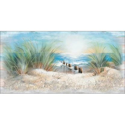 Das Leinwandbild an der Nordsee bringt eine nordisch, maritime Stimmung in Ihr Zuhause. Die sanften Farben verleiten zum Träumen und die künstlerischen Details erinnern an einen Urlaub an der See.