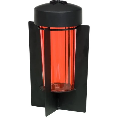 Die Moll Grablampe Stahl Ø 16 cm x 25,5 cm in der Schwarz Matt ist eine moderne Lampe auf Säulen, hat einen Echtglaseinsatz in rot und einen abnehmbaren Deckel mit Kreuz zum einfachen Austauschen der Kerze oder LED. Im Lieferumfang ist ein Erdspiess enthalten.