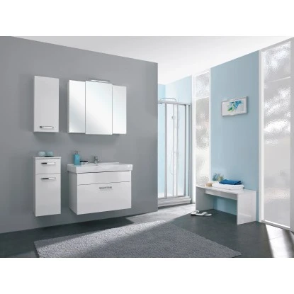 Quickset 312 ist ein Allrounder in weißem Glanzdekor mit wertigen pflegeleichten Keramikwaschtischen, wahlweise als Aufsatzvariante oder perfekt mit dem Unterschrank verbunden. Passende Spiegelschränke mit LED-Beleuchtung und praktische Beimöbel bieten im modernen kubischen Design viele Möglichkeiten. Das Programm kann optional wandhängend oder stehend mit einem Fuß-Set montiert werden.