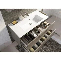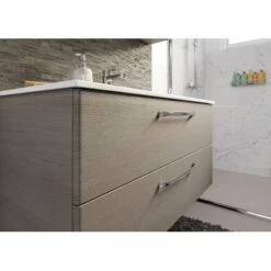 Das Pelipal Badmöbel-Set TrenTino mit Midischrank 137 cm Graphit Struktur bietet eine elementare, bestehend aus den drei Kernkomponenten Waschtisch, Waschtischunterschrank, Spiegelschrank und als Beimöbel ein Midischrank. Prädestiniert ist TrenTino für die individuelle kleinerer Bäder. Bad-Set bestehend aus