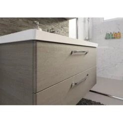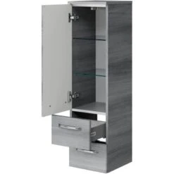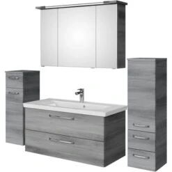 Das Pelipal Badmöbel-Set TrenTino mit Midischrank + Unterschrank 167 cm Graphit bietet eine elementare, bestehend aus den drei Kernkomponenten Waschtisch, Waschtischunterschrank Spiegelschrank und als Beimöbel ein Unterschrank und ein Midischrank. Prädestiniert ist TrenTino für die individuelle kleinerer Bäder. Bad-Set bestehend aus