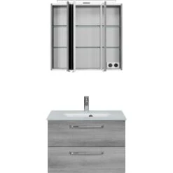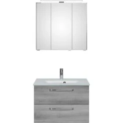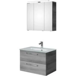 Das Pelipal Badmöbel-Set TrenTino mit Unterschrank und Glaswaschtisch 107 cm Graphit bietet eine elementare, bestehend aus den drei Kernkomponenten Waschtisch, Waschtischunterschrank, Spiegelschrank und als Beimöbel ein Unterschrank. Prädestiniert ist TrenTino für die individuelle kleinerer Bäder. Bad-Set bestehend aus