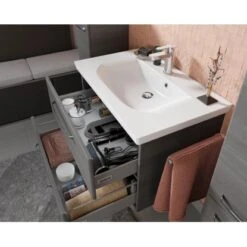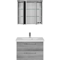 Das Pelipal Badmöbelset TrenTino mit Unterschrank + 3D-Spiegelschrank 110 cm Graphit bietet eine elementare, bestehend aus den drei Kernkomponenten Waschtisch, Waschtischunterschrank Spiegelschrank und als Beimöbel ein Unterschrank. Prädestiniert ist TrenTino für die individuelle kleinerer Bäder. Bad-Set bestehend aus