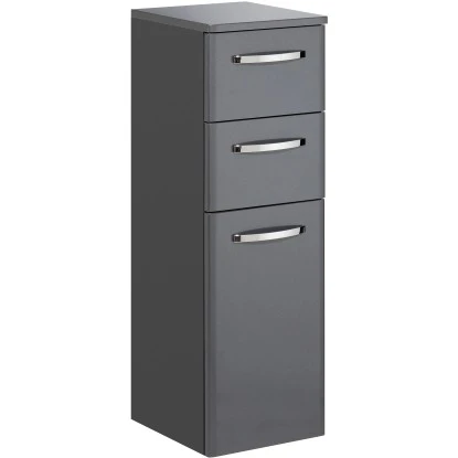 Mit dem Badmöbel-Set Velo erhalten Sie eine perfekt aufeinander abgestimmte Badmöbelserie für einen eleganten Look in Ihrem Badezimmer. Die Fronten und Korpen der geradlinigen Kombinationen mit den weichen Kanten sind im eleganten, glänzenden Anthrazit gehalten. Neben der hohen Qualität durch hochwertige Verarbeitung bietet das Set eine tolle Kombination aus Waschtischunterschrank, Spiegelschrank und Beimöbeln. Die Beimöbel sind entweder mit komfortablen Schubkästen oder mit gedämpften Türen ausgestattet und bieten viel praktischen Stauraum, der durch zusätzliche Einlegeböden zudem bestens organisiert werden kann. Der Waschbeckenunterschrank passt zu jedem Waschbecken. Der Spiegelschrank sorgt sowohl für perfekte Organisation als auch für perfektes Licht durch die LED-Aufsatzleuchte. Das Set Velo kann wandhängend oder stehend (Fuß-Set separat erhältlich) montiert werden, so wie es Ihnen am besten gefällt. Überzeugen auch Sie sich von dieser Kombination aus Design und Qualität in Ihrem eigenen Zuhause.