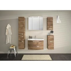 Das Pelipal Highboard Fokus 4010 in der Farbe Eiche Ribbeck bietet idealen Stauraum im Badezimmer für Sie.