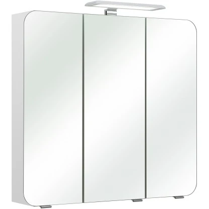 Der Badezimmerschrank verfügt über drei Spiegeltüren aus hochwertigem Kristallglas. Durch ein Anwinkeln der Türen entsteht ein 3D-Spiegeleffekt. Dank der LED-Aufsatzleuchte, die im Lieferumfang enthalten ist, werden die Spiegel jederzeit perfekt ausgeleuchtet. Die Spiegel überzeugen durch abgerundete Kanten. Zudem ist die Beleuchtung sehr energiesparend. Der Pelipal Spiegelschrank besitzt außerdem eine Schalter-Steckdosen-Kombination. Die innenliegenden Holzeinlegeböden können Sie nach Ihren Wünschen anbringen. So sind Ihre Badezimmerutensilien gut und ordentlich verstaut.