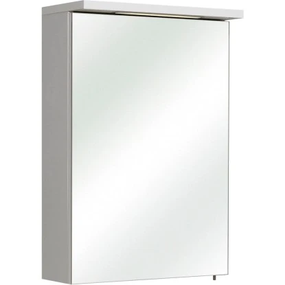 Der Spiegelschrank 84-IV im WeiĂ-Glanz Dekor garantiert perfekt organisierten Stauraum und modernste Beleuchtung.