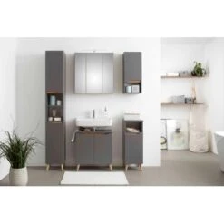 Der moderne Wandschrank ĂŒberzeugt neben der ansprechenden Optik auch mit seiner hohen FunktionalitĂ€t. Er ist mit einer DrehtĂŒr, einem Einlegeboden aus Glas und einem offenen Fach ausgestattet und bietet ausreichend Platz fĂŒr die optimale Aufbewahrung von HandtĂŒchern & Co. Die SchranktĂŒr ist mit gedĂ€mpften Scharnieren ausgestattet und schlieĂt dadurch sanft und besonders leise.