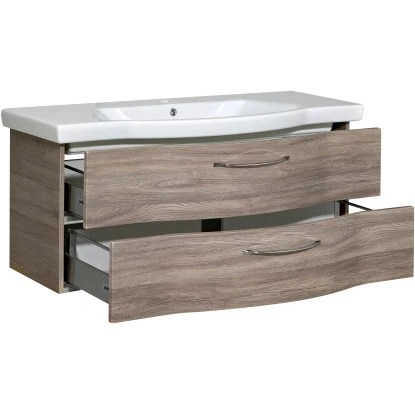 Wohnliches Ambiente und viel Stauraum bietet der Waschbeckenunterschrank Quantum 3 in Sanremo Eiche. Mit extra Stauraum bietet der Unterschrank viel Platz fĂŒr Ihre tĂ€glichen Bad- und Kosmetikartikel oder Ihre HandtĂŒcher. Der Schrank kann auĂerdem als Ablage oder als Platz fĂŒr Dekorationen dienen. Die hĂ€ngende Konzeption der Quantum UnterschrĂ€nke wirkt zudem besonders elegant und lĂ€sst den Raum gröĂer wirken.