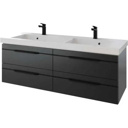Pelipal Waschbeckenunterschrank Quantum 05 Anthrazit Hochglanz Griffe Schwarz