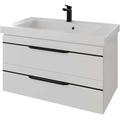 Pelipal Waschbeckenunterschrank Quantum 05 Weiß Hochglanz Griffe Schwarz