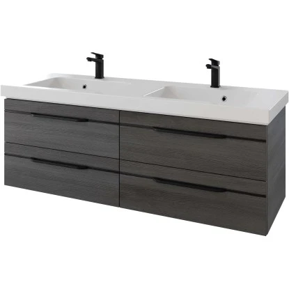 Pelipal WaschbeckenunterschrankQuantum 05 Graphit Struktur Quer NB Griffe Schw