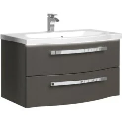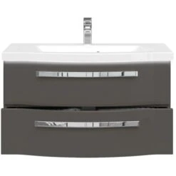 Das 2-teilige Pelipal Badmöbel-Set Fokus 4005 zeichnet sich durch edles Design und hohe Funktionalität aus. Das Set, bestehend aus einem elegant geschwungenen Waschbeckenunterschrank und einem hochwertigen Mineralmarmor-Waschtisch mit Beleuchtung lässt sich mit seinen Fronten in trendigem, steingrauem Hochglanz Lack in beinahe jede Stilrichtung integrieren. Die Bügelgriffe in Chrom Glanz unterstreichen die lackierte Front und setzen klare Akzente in Ihrem Badezimmer. Die angenehme und indirekte Beleuchtung in der Schattenfuge, zwischen dem Waschbecken und dem Unterschrank, sorgt zusätzlich für eine tolle Optik. Sie ist mit einem Bewegungssensor ausgestattet und leuchtet dezent in die geöffneten Schubladen.
