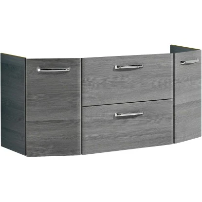 Die Fronten und Korpen dieses formschönen Badmöbels sind in eleganter Graphit Struktur gehalten. Neben der modernen Optik können die Quickset 328 Badmöbel auch mit umfangreichen Kombinationsmöglichkeiten und einer hochwertigen Verarbeitung überzeugen. Die Quickset 328 Badmöbel können wandhängend oder stehend (Fuß-Set separat erhältlich) montiert werden, so wie es Ihnen am besten gefällt. Überzeugen auch Sie sich von dieser Kombination aus Design und Qualität in ihrem eigenen Zuhause. Von Außen ist Ihr neues Möbelstück mit hochwertiger Folie in Holzoptik und -haptik überzogen. Innen ist Ihr Badmöbel mit weißem Melamin beschichtet: Ideal für eine schnelle Reinigung und weniger feuchtigkeitsanfällig. Unsere Möbel werden von uns nach modernsten Verfahren und Verträglichkeitsstandards hergestellt. Überzeugen Sie sich selbst von der Qualität, trotz günstiger Preise! Die Handgriffe sind in Chrom-Optik.