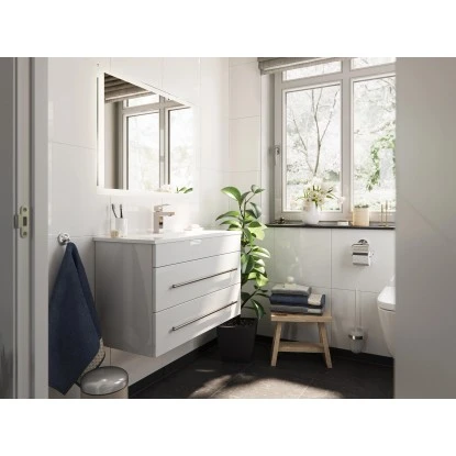 Dank der Melaminharzbeschichtung sind Ihre Badmöbel feuchtigkeitsbeständig und pflegeleicht.