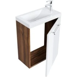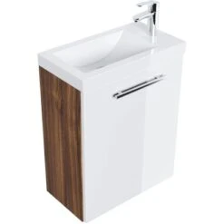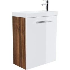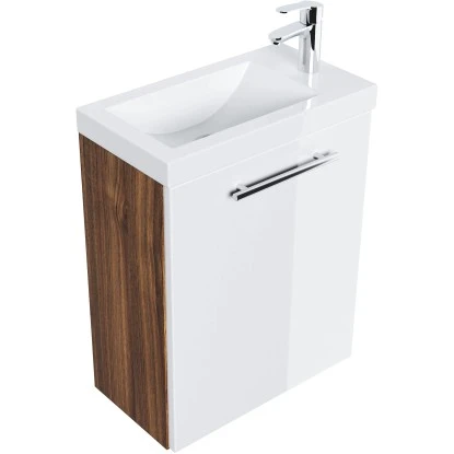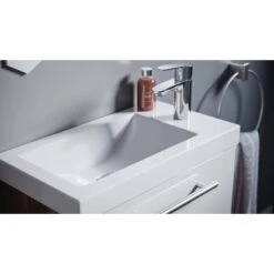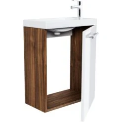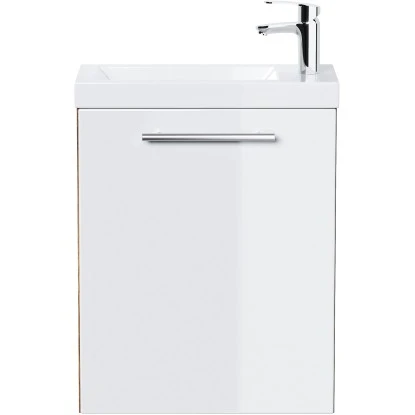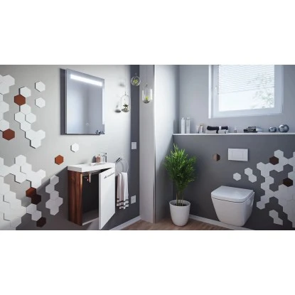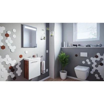 Dieser filigrane Handwaschplatz ist die perfekte Lösung für kleinere Bäder. Durch die hochwertigen Hochglanz MDF-Fronten bietet er einen exklusiven Blickfang für Ihr Bad. Das Modell verfügt über einen Echtmetallgriff und ein Mineralguss-Becken, die Türe ist beidseitig anschlagbar. Die Montage erfolgt durch einfaches Aufhängen an der Wand. Maße (H x B x T): 50,5 cm x 40 cm x 22 cm. Zusätzlich sorgt der LED Spiegel mit Touch Funktion für eine optische Vergrößerung. Eine kurze Berührung genügt um die LED Beleuchtung zu- oder abzuschalten. Die Funktionalität des LED Spiegels lässt kaum Wünsche unerfüllt. Darüber hinaus sind LEDs erheblich sparsamer im Stromverbrauch.