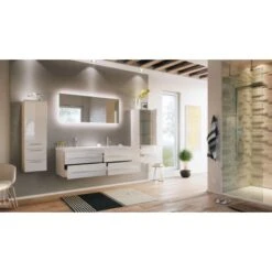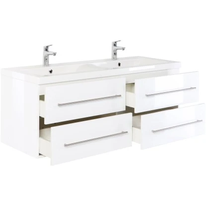 Ein exklusives Badmöbel-Set für gehobene Einrichtungsträume in großen Badezimmern. Während Ihnen der besonders großzügige Doppelwaschplatz ein hohes Maß an Komfort verspricht, stellen die Fronten in Anthrazit Seidenglanz die Hochwertigkeit ebenso gekonnt unter Beweis, wie das Mineralguss-Becken mit klaren Linien und die Schubkästen mit Softclose.