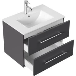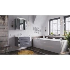 Das 3-teilige Posseik Badmöbel-Set Homeline überzeugt durch das moderne und edle Design in glänzendem Anthrazit. Die matt gebürsteten Edelstahl-Griffe runden das schöne Gesamtbild optimal ab. Mit diesen Badmöbeln sorgen Sie für ein absolutes Highlight in Ihrem Bad. Das Set verbindet gekonnt dezente Eleganz mit praktischen Eigenschaften. Für ein bemerkenswertes Qualitätsmerkmal sprechen die weichen abgerundeten Kanten und Ecken sowie das Soft-Close-System, wodurch das geräuschlose Schließen der Schubladen und Türen garantiert wird.