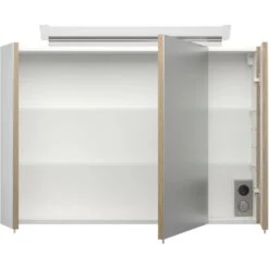 Kombibox im Spiegelschrank mit Lichtschalter und Stromanschluss.