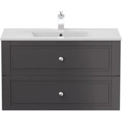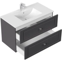 Wer etwas mehr Ablagefläche im Bad braucht, für den ist der Posseik Badmöbel-Set Homeline in Anthrazit eine ausgezeichnete Wahl. Auf den breiten Rändern ist genug Platz für Hygiene- oder Dekoartikel. Alles was dort nicht hinpasst, kann in den großen Schubladen verstaut werden. So haben Sie immer alles griffbereit!