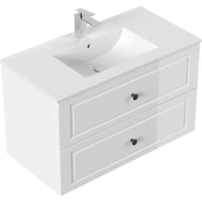 Badmöbel Waschtisch Unterschrank, 2 Schubladen mit Softclose (B/H/T) 90/54/46 cm.