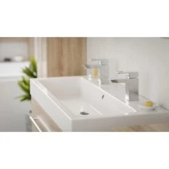 Das moderne Badmöbel-Set Livono der Marke Posseik bietet großzügigen Stauraum kombiniert mit hoher Funktionalität sowie qualitativ hochwertigen Zusammensetzung um einen langfristig Gebrauch zu garantieren! Bereits auf den ersten Blick überzeugt das zeitlose Design durch eine strukturierte, klare Linienführung. Zahlreiche Details wie Soft-Close Schienen zum Schließen der Schubladen, Edelstahl-Handgriffe, ein Waschbecken aus Mineralguss und die Fertigung aus MDF unterstreichen den hochwertigen Charakter dieser Badezimmer-Möbel.