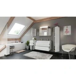 Das moderne Badmöbel-Set Livono der Marke Posseik bietet großzügigen Stauraum kombiniert mit hoher Funktionalität sowie qualitativ hochwertigen Zusammensetzung um einen langfristig Gebrauch zu garantieren! Bereits auf den ersten Blick überzeugt das zeitlose Design durch eine strukturierte, klare Linienführung. Zahlreiche Details wie Soft-Close Schienen zum Schließen der Schubladen, Edelstahl-Handgriffe, ein Waschbecken aus Mineralguss und die Fertigung aus MDF unterstreichen den hochwertigen Charakter dieser Badezimmer-Möbel.