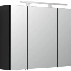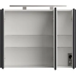 Der Spiegelschrank mit den Maßen 80,6 cm x 62 cm x 16,7 cm (B/H/T) verfügt über Softclose-Türen mit Spiegel. 4 Glasböden im Inneren des Schrankes ermöglichen eine individuelle Einteilung Ihres Inventares. Der Schrank ist mit einer LED-Beleuchtung ausgestattet, die Ihnen auch in den frühen Morgen- oder den späten Abendstunden Licht spenden kann (Leuchtmittel: Farbtemperatur 6.500 K, 9,6 W, 500 lm). Gesteuert wird die Beleuchtung durch einen An-/Aus-Schalter. Hier ist ebenfalls noch eine Steckdose angebracht, die beispielsweise für den Rasierer, den Föhn oder die elektrische Zahnbürste genutzt werden kann.