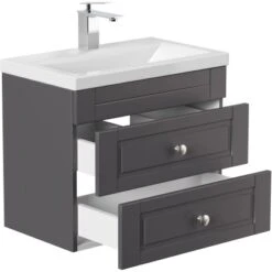 Der schmale Schnitt des Posseik Badmöbel-Set Portus SlimLine ist Ihre Lösung für Platzmangel im Bad. Dabei müssen Sie aber weder Funktion noch Komfort einbüßen. Abgerundet wird das Ganze mit dem zeitlosen Landhaus-Stil von emotion in Anthrazit.