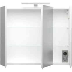 Das Badmöbel-Set Pro besteht aus einem Waschbeckenunterschrank mit Waschtisch, einem Spiegelschrank mit Beleuchtung und einem Hochschrank. Die Badkombination besticht durch eine edle Optik in Weiß Hochglanz und verleiht Ihrem Bad einen luxuriösen Look. Griffe aus schwerem, matt gebürsteten Edelstahl runden das elegante Design gekonnt ab. Das geräumige Badezimmermöbel-Set eignet sich vor allem für große Bäder.