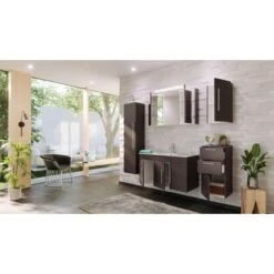 Das moderne Badmöbelset der Marke Posseik bietet großzügigen Stauraum kombiniert mit hoher Funktionalität sowie qualitativ hochwertigen Zusammensetzung um einen langfristig Gebrauch zu garantieren! Bereits auf den erstenBlick überzeugt das zeitlose Design durch eine strukturierte, klare Linienführung. Zahlreiche Details wie Soft-Close Schienen zum Schließen der Schubladen, Edelstahl-Handgriffe, ein Waschbecken aus Keramik und die Fertigung aus MDF unterstreichen den hochwertigen Charakter dieser Badezimmer-Möbel.