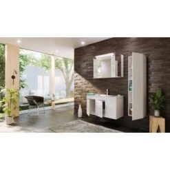 Das moderne Badmöbelset der Marke Posseik bietet großzügigen Stauraum kombiniert mit hoher Funktionalität sowie qualitativ hochwertigen Zusammensetzung um einen langfristig Gebrauch zu garantieren! Bereits auf den erstenBlick überzeugt das zeitlose Design durch eine strukturierte, klare Linienführung. Zahlreiche Details wie Soft-Close Schienen zum Schließen der Schubladen, Edelstahl-Handgriffe, ein Waschbecken aus Keramik und die Fertigung aus MDF unterstreichen den hochwertigen Charakter dieser Badezimmer-Möbel.
