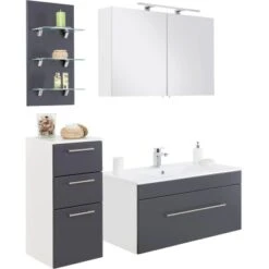 Ummantelt ist das Badmöbelset Made in Germany mit einer Markenbeschichtung der Firma Renolit und mit ökologischen Kleber der Firma Henkel verarbeitet. Innen sind die Schränke und Schubladen mit weißem Melamin beschichtet: Ideal für eine schnelle Reinigung.