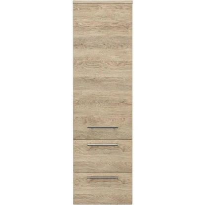 Funktioneller Hochschrank in formvollendetem Design. Der Hochschrank Homeline verfügt auf einer Breite von 35,2 cm über eine Vielzahl an funktionellen Nutzungsmöglichkeiten. Mit einer Höhe von 120 cm finden sowohl im Schrank als auch auf dem Hochschrank zahlreiche im Bad benötigte Gegenstände ihren festen Platz. Die Funktionalität wird zudem durch die qualitative Verarbeitung unterstützt. Dazu gehören die Fertigung aus MDF, Edelstahl-Handgriffe und Türen mit Soft-Close-System sowie 2 Schubladen und verstellbare Glasböden. Dank des minimalistischen Designs und der klassischen Farbgestaltung passt dieses Badmöbel auch sehr gut zur bereits bestehenden Einrichtung. Für eine noch bessere Integration des Hochschranks in den Raum sorgen auch die flexibel links und rechts montierbaren Türen mit Soft-Close-System, welche somit immer bequem geöffnet werden können.
