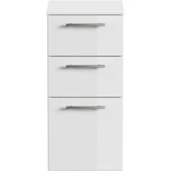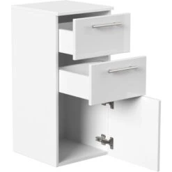 Das Badmöbel-Set Viva zeichnet sich durch modernes Design und hochwertige Qualität aus. Die Serie ist in verschiedenen Farben erhältlich und bietet tolle Kombinationsmöglichkeiten. Die Fronten der Möbel sind auch über die Kanten und Ecken mit einer hochwertigen Beschichtung versehen. Die weichen Kanten verleihen dieser Möbelserie eine schöne 3D-Optik. Der Korpus ist in Weiß matt gehalten während für die Fronten sowohl die Farben Weiß Hochglanz, Schwarz und Anthrazit als auch eine edle Betonoptik zur Auswahl stehen. Der Midischrank ist die ideale Ergänzung zu Ihr Badmöbel-Set Viva.
