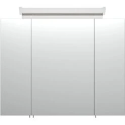 Sämtliche Ansprüche an einen Spiegelschrank finden Sie hier erfüllt: Neben der atmosphärischen Beleuchtung ist zusätzlich an der Seite der An- und Ausschalter sowie eine praktische Stromsteckdose angebracht. Hier können Sie beispielsweise Ihren Fön oder Rasierer ganz ohne Kabelsalat einstecken. Die Türe schließt sanft mit dem Soft-Close-Schließsystem. Die hochglänzende weiße Beschichtung ist wasserabweisend.
